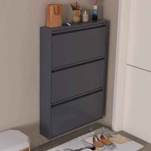 SUZEPER Wall Mounted Shoe Cabinet with Flip Drawers, Hidden Large Shoe Cabinet Storage for Entryway, Freestanding No Assembly Shoe Rack Shoe Organizer for Hallway Corridor(40.6x25.7x4.8in, Gray)
