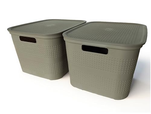 Ecoplast | Set of 2 Cappuccino Large Multipurpose Storage Containers with Lid and Separator - Space-Saving Storage Organizer Box for Cabinets, Storage Rooms and Offices