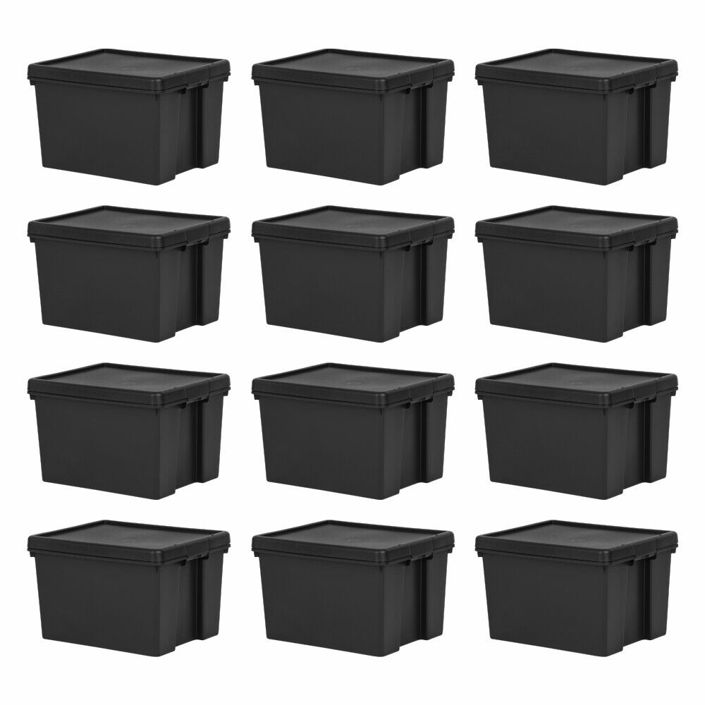 Black 12 x Large Plastic Containers Storage Boxes With Lids 45l Wholesale BULK