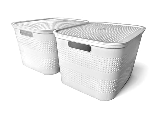 Ecoplast | Set of 2 Large White Multipurpose Storage Containers with Lid and Separator - Space Saving Storage Organizer Box for Cabinets, Closets and Offices