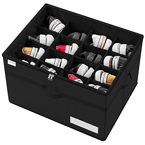 LUVHOMEE Shoe Organiser for Closet, Fits 16 Pairs, Large Shoe Box Storage Containers, Clear Foldable Shoe Storage Bins w/Bottom Support, Space Saving Shoes Holder w/Reinforced Handles, Black