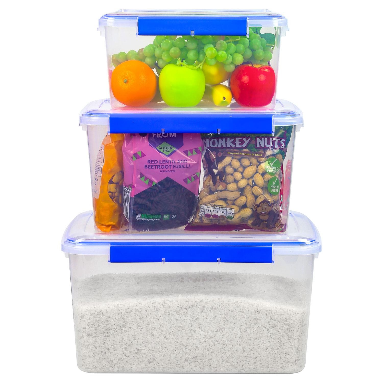 3 x Large Airtight Food Storage Containers Clip Lock Lid 100% Non-Leak BPA Free