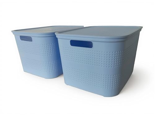 Ecoplast | Set of 2 Multipurpose Large Lavender Storage Containers with Lid and Separator - Space-Saving Organizer Box for Cabinets, Storage Rooms and Offices