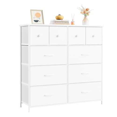Nicehill Chest of Drawers with 10 Drawers, Chest of Drawers for Bedroom, Nursery & Closet, Wooden Top, Anti-Tip Design, Large Storage for Clothes, Toys & Blankets - White