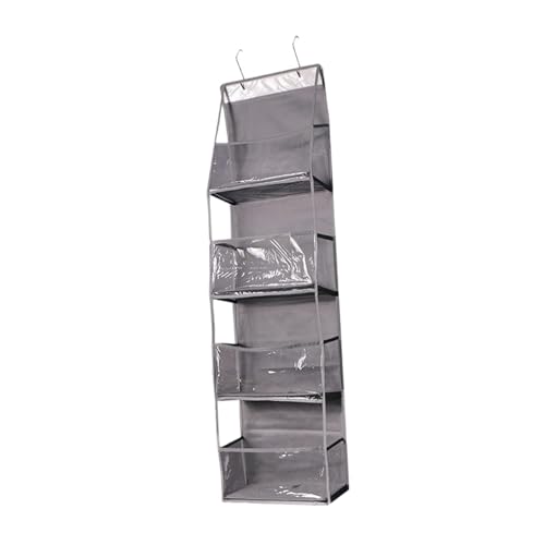 KEEGH Over Door Hanging Storage Over The Door Organiser 5 Large Compartments with Window 3 Clear Pockets Foldable Hanging Storage For Diaper, Towels And Toys. Grey