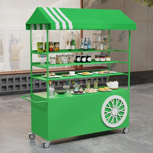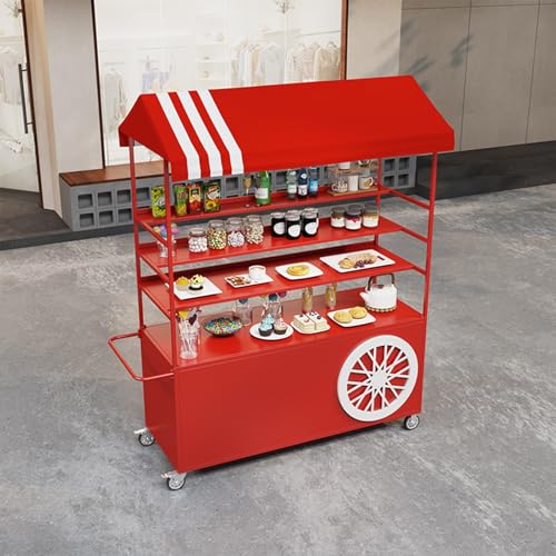 HPIRFYE 4 Tier Outdoor Vendor Cart,Iron Food Cart For Business With Large Capacity Storage,Creative Market Stall With Wheels Awning,for Selling Snacks Sweets Toys