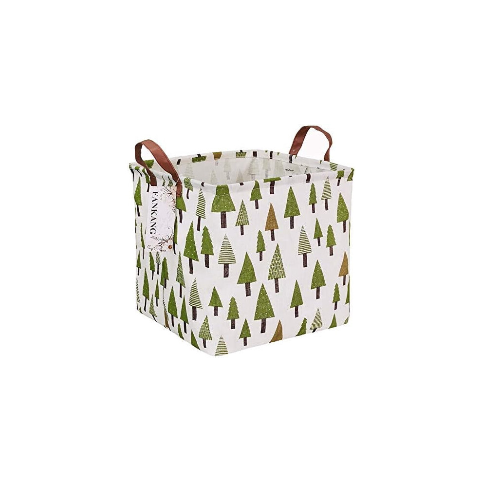 Square Nursery Hamper â Foldable Canvas Laundry Basket with Waterproof PE Coating, Large Storage for Clothes, Toys, Gifts (Green Forest)