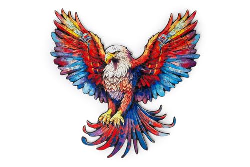 Recent Toys Jigsaw Eagle for Adults and Kids.185 Puzzle, Large Size 28.5 x 27.5 cm with Unique Shaped Pieces. Includes Wooden Storage Gift Box and Stand