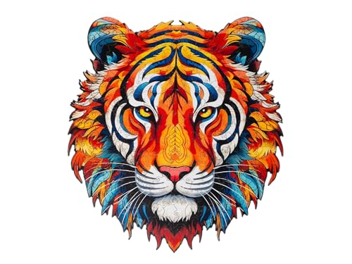 Recent Toys Wooden Jigsaw Puzzle Tiger for Adults and Kids.167 Piece puzzle, large size 28.5 x 30.5 cm with Unique Shaped pieces. Includes wooden storage gift box and stand.