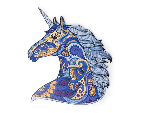 Recent Toys Wooden Jigsaw Puzzle Unicorn for Adults and Kids.185 Piece puzzle, large size 26 x 31 cm with Unique Shaped pieces. Includes wooden storage gift box and stand.