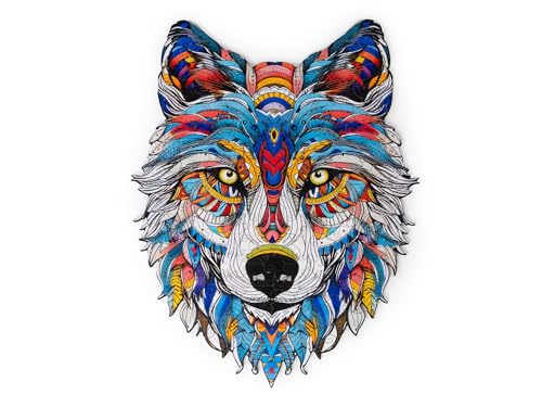 Recent Toys Wooden Jigsaw Puzzle Wolf for Adults and Kids.170 Piece puzzle, large size 28 x 36 cm with Unique Shaped pieces. Includes wooden storage gift box and stand.