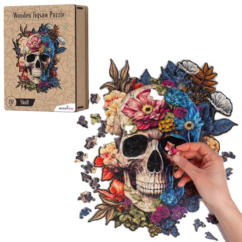 Recent Toys Wooden Jigsaw Puzzle Fantasy Skull for Adults and Kids.232 Piece puzzle, large size 29 x 34 cm with Unique Shaped pieces. Includes wooden storage gift box and stand.