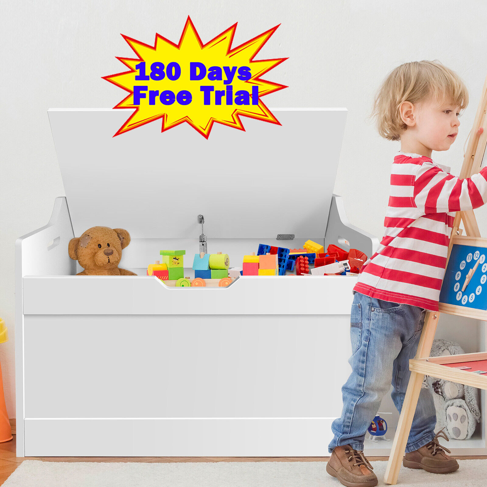 White Square Toy Box Large Storage Chest for Toys Children Kids Bedroom Ottoman