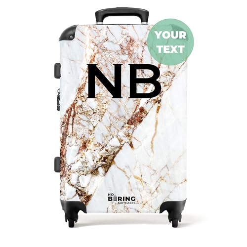 NoBoringSuitcases.com® Adults Luggage Suitcase for Women and Men - Personalised Large 26-28 inch - White Marble with Gold - Customisable - Hard Shell Trolley - On Wheels - 23kg