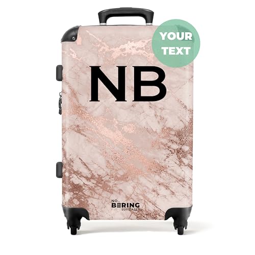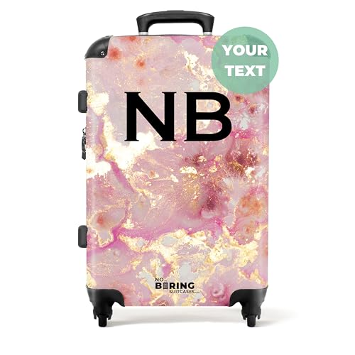 NoBoringSuitcases.com® Adults Luggage Suitcase for Women and Men - Personalised Large 26-28 inch - Pink Marble with Gold - Customisable - Hard Shell Trolley - On Wheels - 23kg