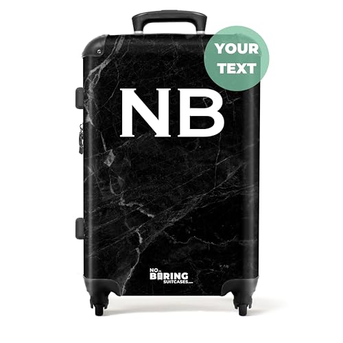 NoBoringSuitcases.com® Adults Luggage Suitcase for Women and Men - Personalised Large 26-28 inch - Black Marble with White - Customisable - Hard Shell Trolley - On Wheels - 23kg