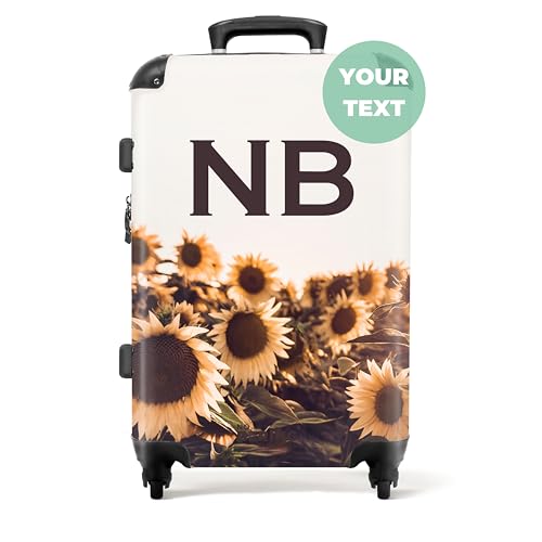 NoBoringSuitcases.com® Adults Luggage Suitcase for Women and Men - Personalised Large 26-28 inch - Sunflower - Customisable - Hard Shell Trolley - On Wheels - 23kg