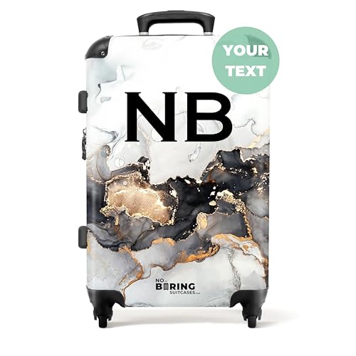 NoBoringSuitcases.com® Adults Luggage Suitcase for Women and Men - Personalised Large 26-28 inch - Black Marble with Gold - Customisable - Hard Shell Trolley - On Wheels - 23kg