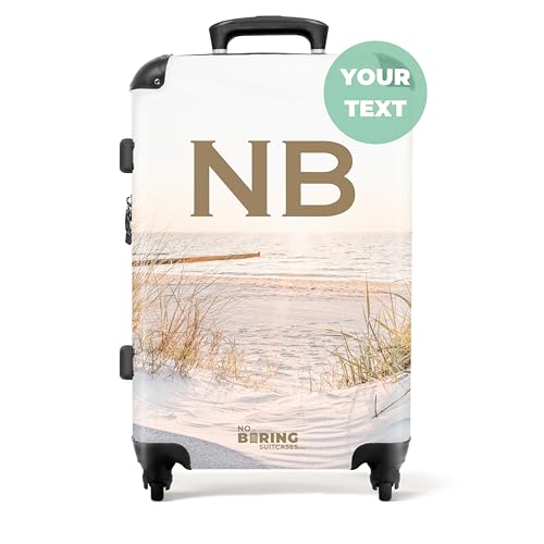 NoBoringSuitcases.com® Adults Luggage Suitcase for Women and Men - Personalised Large 26-28 inch - Dunes with Sea - Customisable - Hard Shell Trolley - On Wheels - 23kg