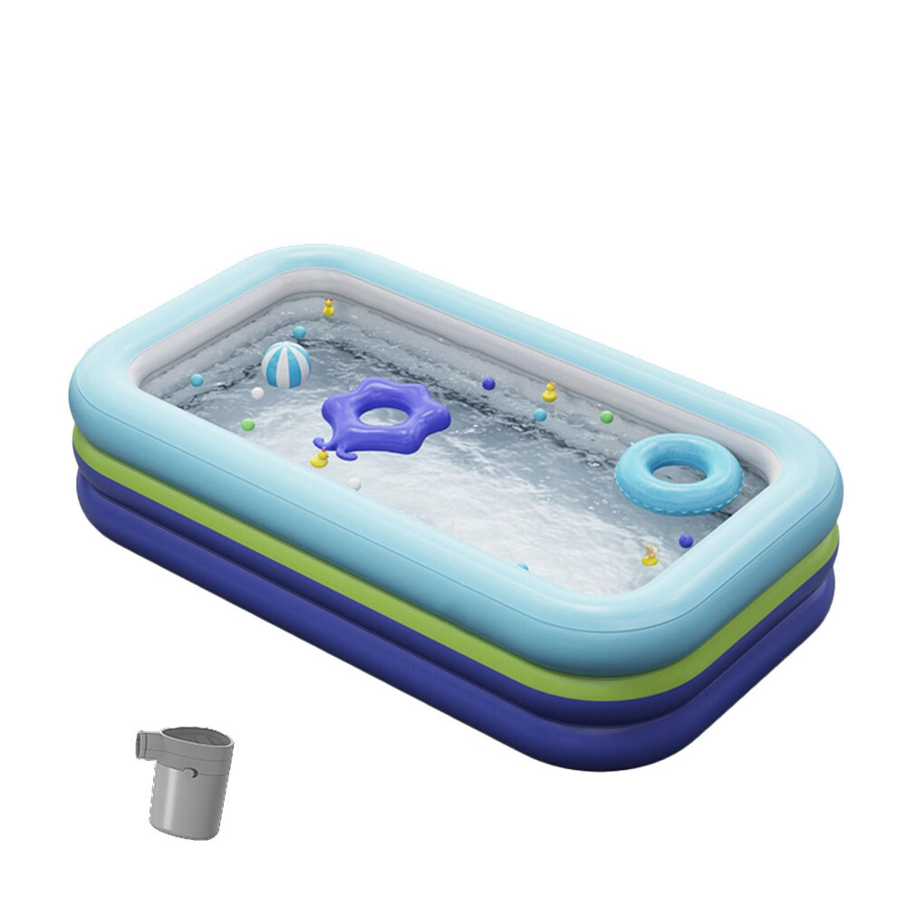 Large Family Inflatable Swimming Pool for Adults and Kids, Rectangular PVC Pool for Backyard Fun