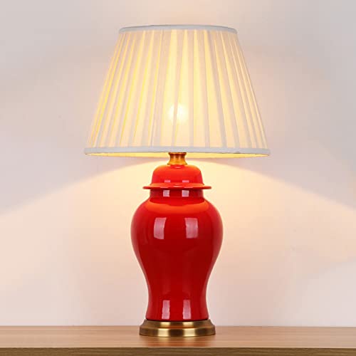 GGYTMQL 72cm large Ceramics Table Lamp American retro red Bedroom Bedside Lamp with fabric pleated lampshade Decor for Living Room Office Nightstand Home Family