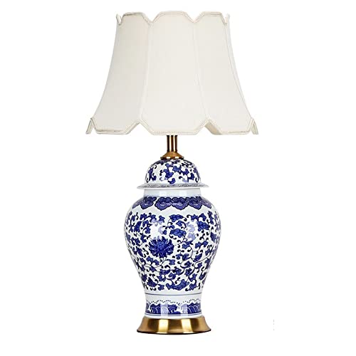 GGYTMQL Blue And White Porcelain Bedroom Bedside Lamp Ceramics Table Lamp Large Oriental Ceramic Table Lamp -made Porcelain Table Lamp With Drum -shaped Lampshade
