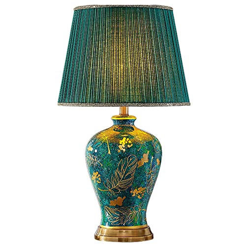 GGYTMQL Table Lamp Large Oriental Ceramic Table Lamp Painted Bedroom Bedside Lamp Classical Bedside Lamp Porcelain Table Lamp Green Glazed Vase Bedroom Desk Lamp 68 * 40cm