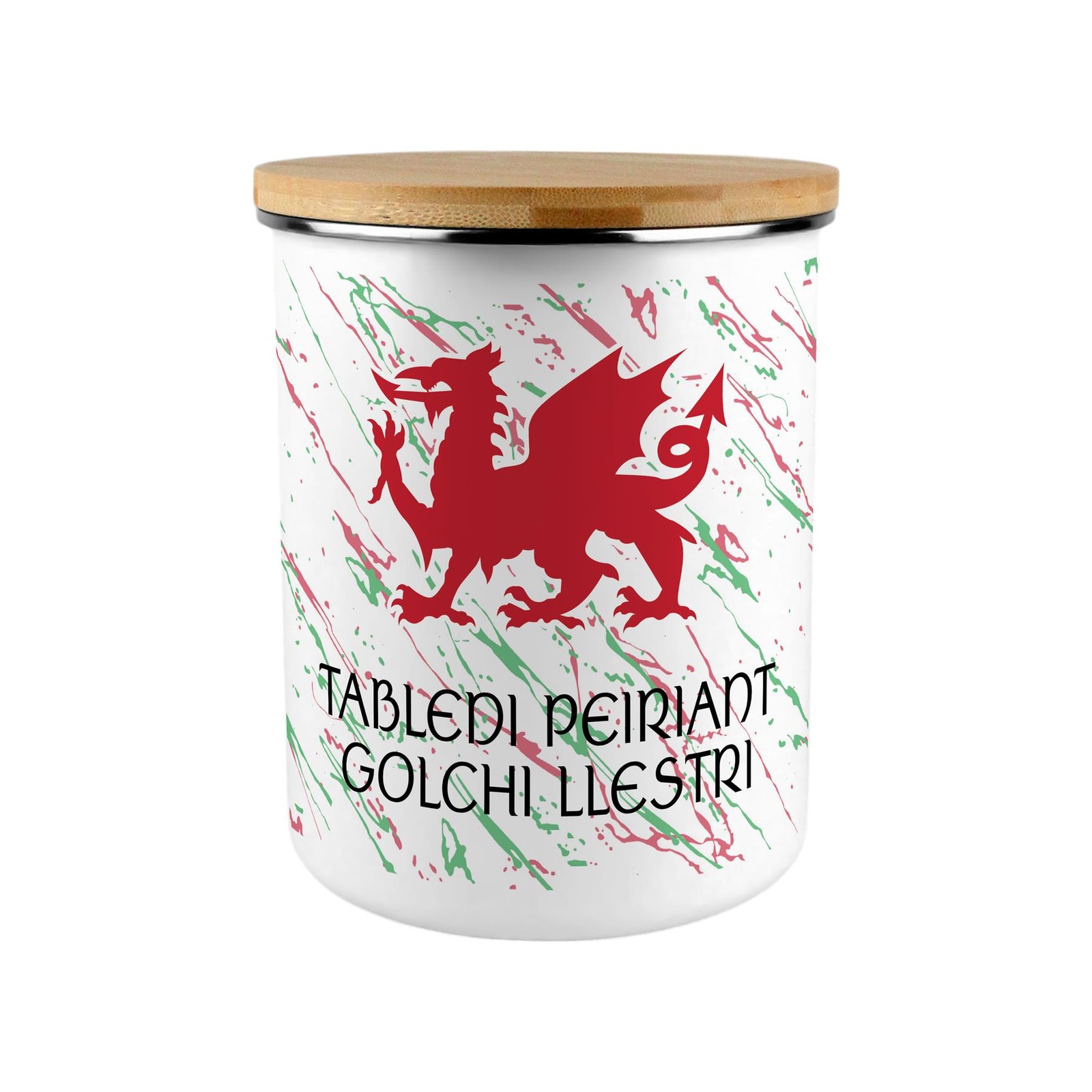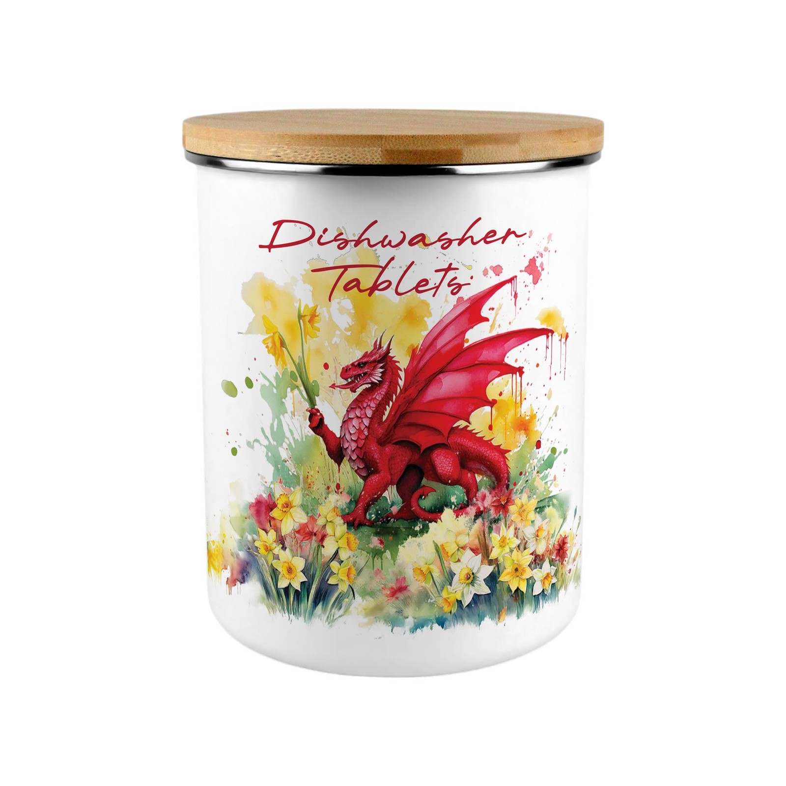 Wales Dragon Large Dishwasher Tablets Canister Gift - Welsh Language Storage Jar