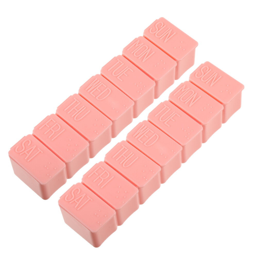(Pink) 2 Pcs 7-grids Pills Case Large Capacity Tablets Storage Box Organizer
