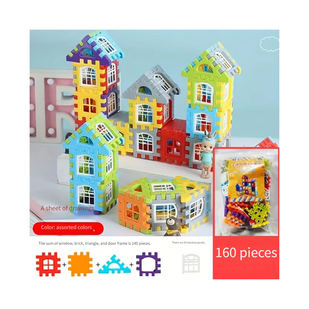(Bag: 160 tablets) Large-Sized Building Blocks | New, Perfect for Pretend Play, Suitable for Boys And Girls, Featuring Big Pieces with Windows