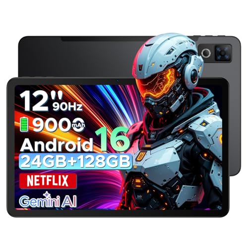 DOOGEE U12 Android 16 Tablet, 12 Inch Tablet, FHD+(2000x1200) 90Hz Large Screen Gaming Tablets, 24GB+128GB (2TB), Gemini AI Octa-Core, 9000mAh/18W, Camera 13+8MP, Widevine L1, 2.4G/5G WiFi, Face ID