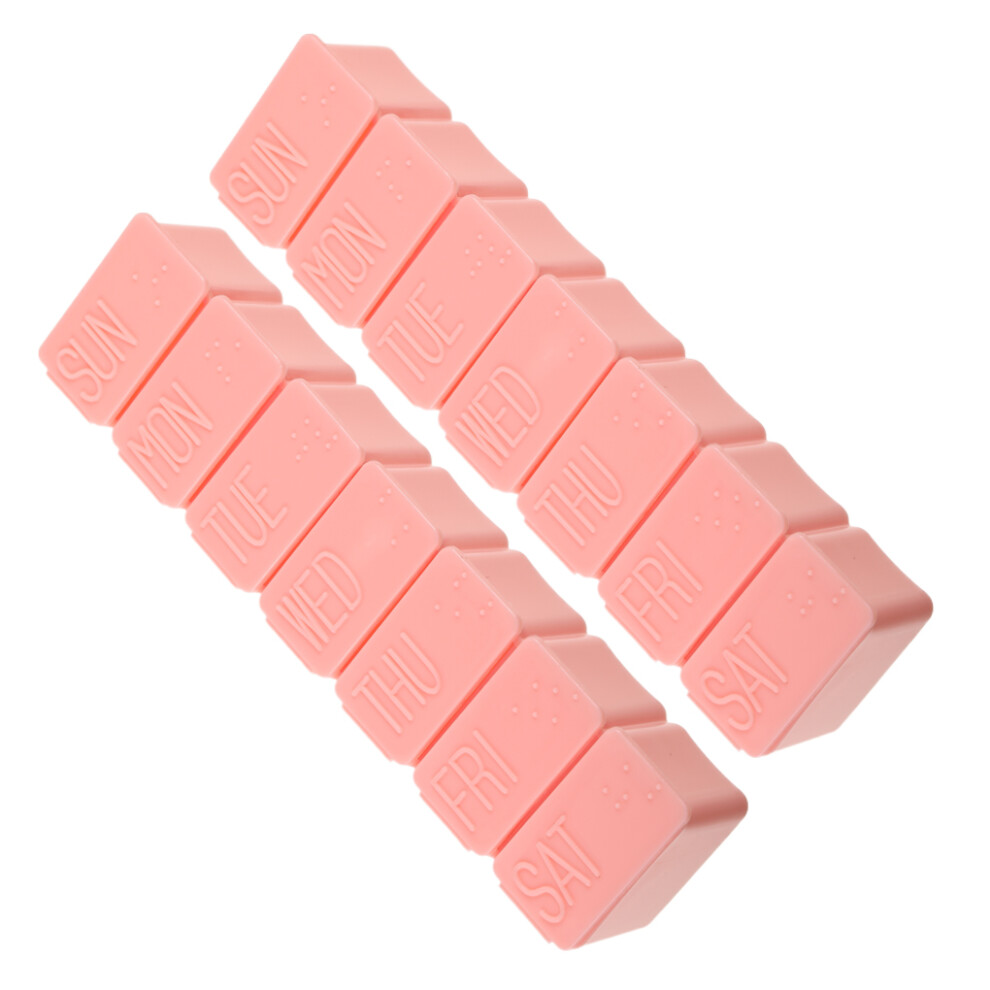 (Pink) 2 Pieces 7-grids Pills Case Large Capacity Tablets Storage Box