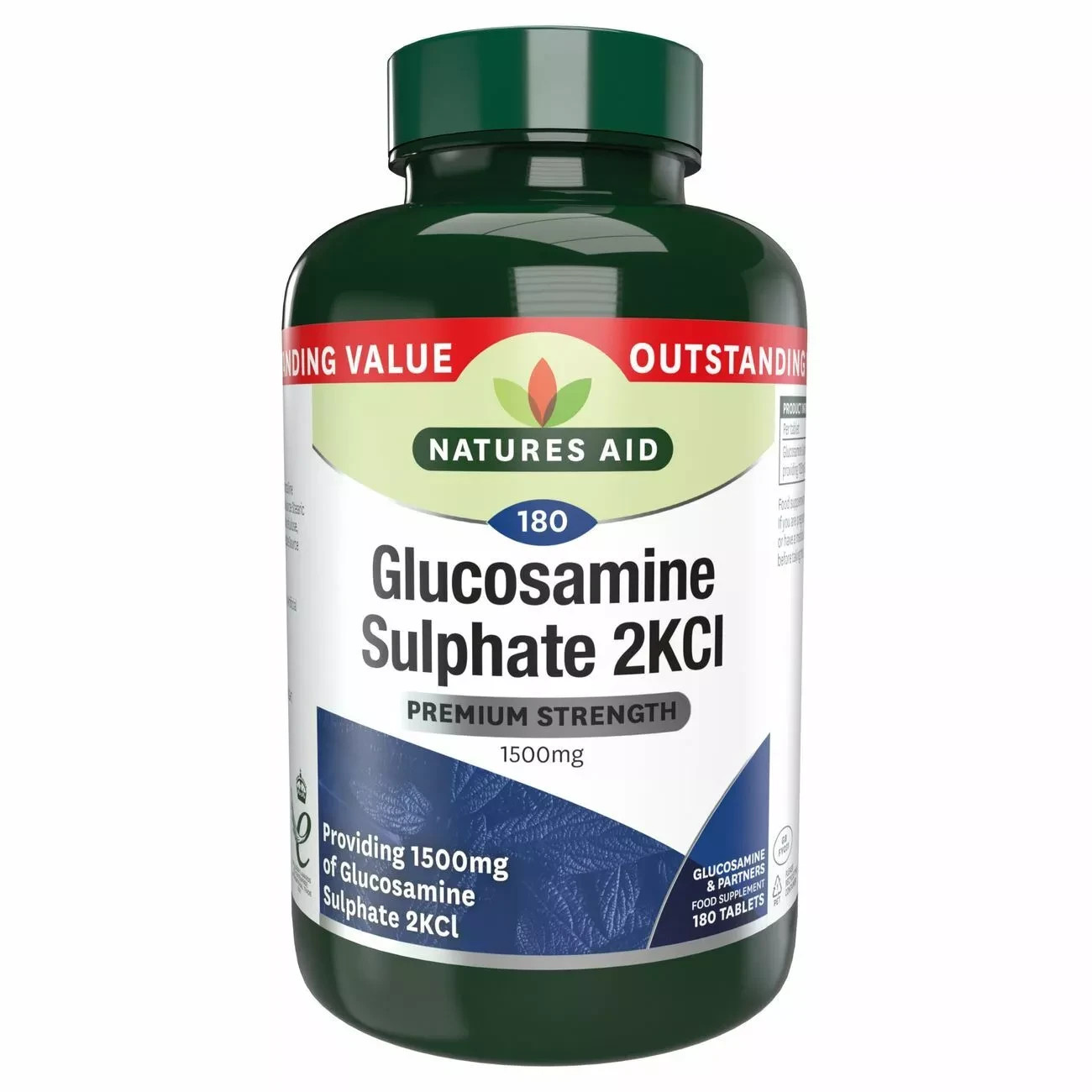 💚 Natures Aid Glucosamine Sulphate 2KCI 1500mg High Strength LARGE: 180 Tablets