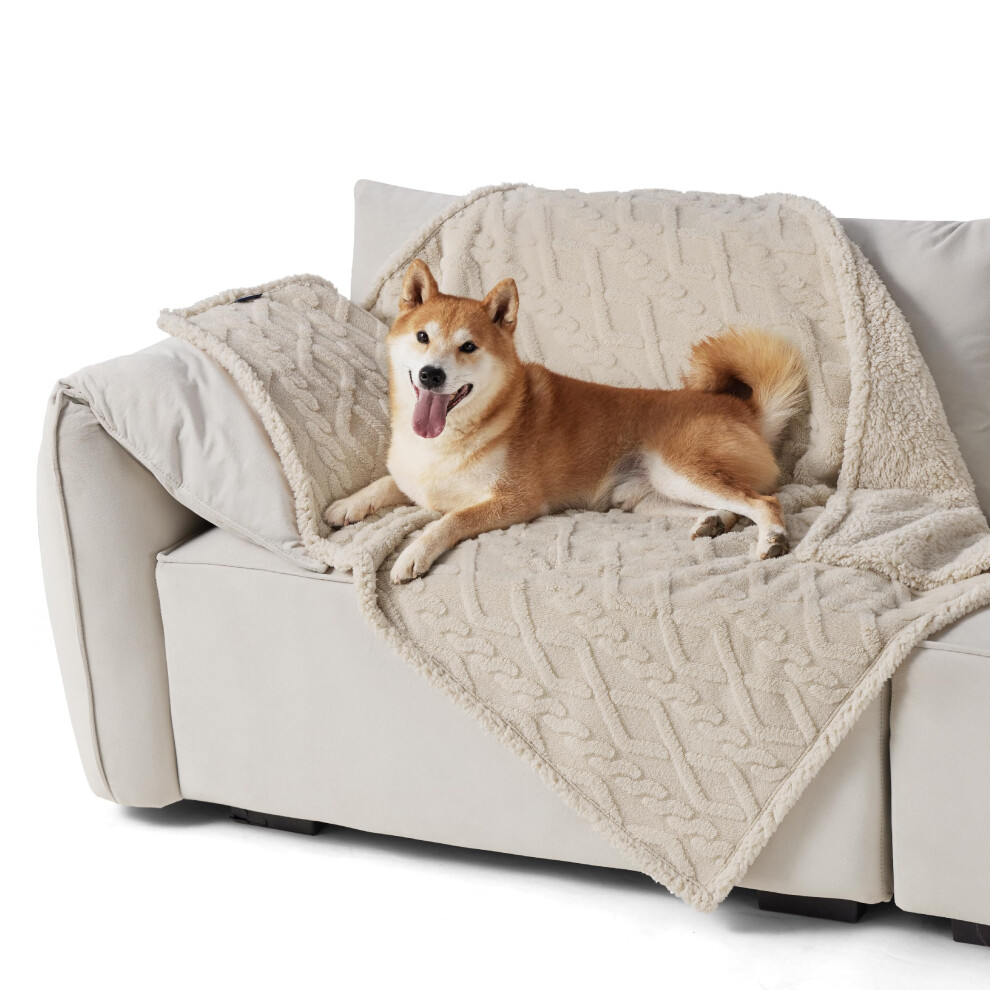 LE SURE Washable Dog Blanket Sherpa - 100x120cm Waterproof Blanket for Dogs and Cats, Large Pet Throw Protects Bed and Couch Sofa with Soft Plush, Cream