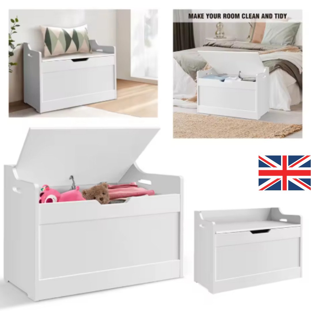 Large Wooden Toy Box Kids Storage Bench Ottoman Nursery Bedroom Furniture Unit