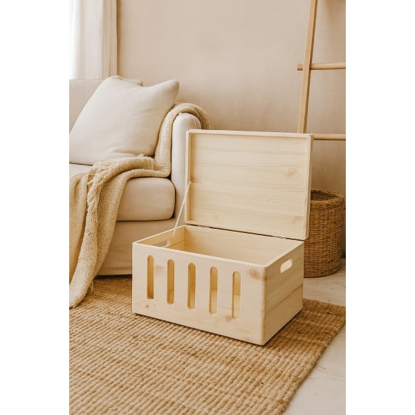 Large Toy Wooden Box Storage Chest with Lid and CUTOUTS on FRONT Furniture Trunk