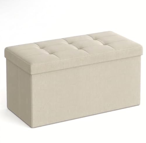 120L Folding Storage Ottoman Bench - 43" Large Padded Footrest & Toy Chest with Lid, Holds 300kg, Linen Fabric Entryway Bench for Bedroom, Hallway & Living Room - dark Grey and Cream (Cream)