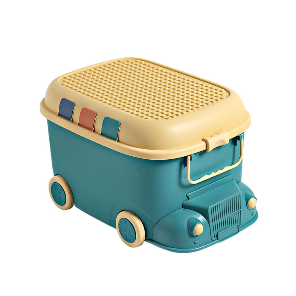Kids Toy Storage Box Bus Shaped Large Plastic Toy Chest with Lid and Wheels Dustproof Handle Green