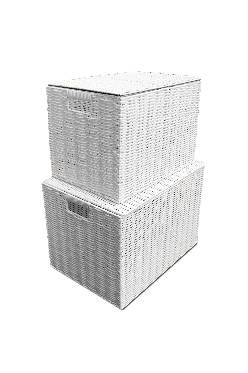 Laundry Resin Woven Hamper Basket Storage Chest Trunk Hamper/Kids Toy Storage (1 x Large, 1 x Medium)
