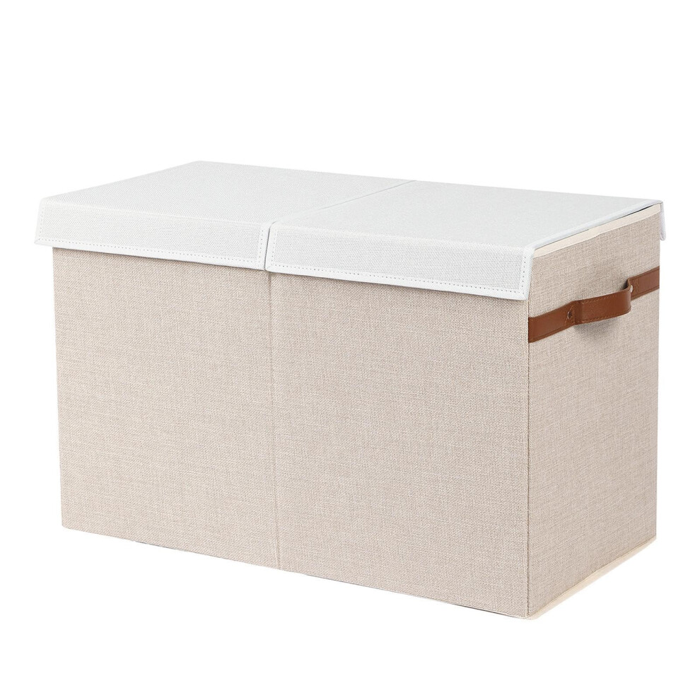 Toy Storage Box with Dustproof Lid, Foldable Large Toy Chest Organizer for Bedroom, Beige