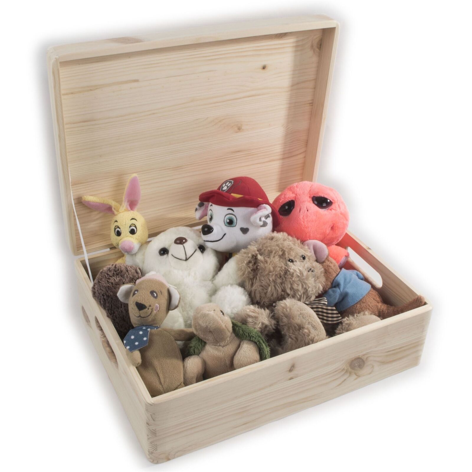 Large Wooden Toy Chest Trunk Storage Box With Hinged Lid & Handles / Unpainted