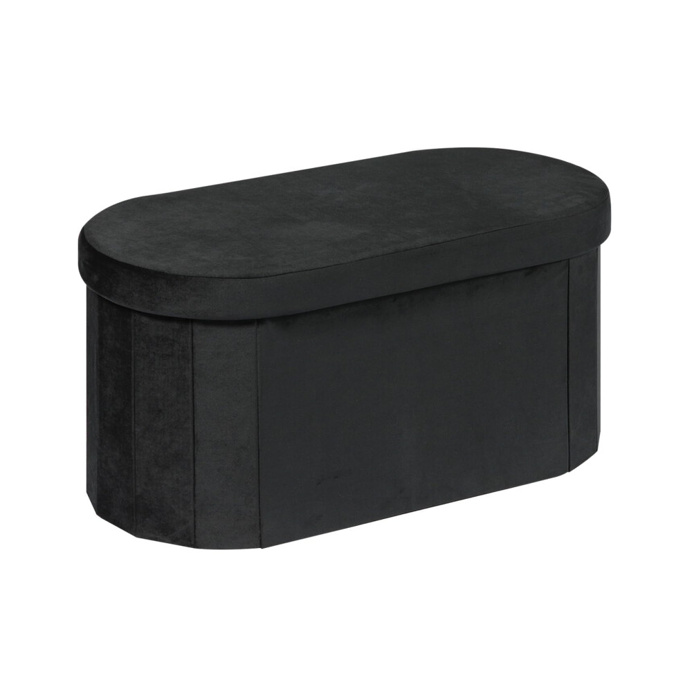 Bonlife Black Velvet Ottoman Storage Bench with Seat,Foldable Stool Living Room Furniture,Oval Large Toy Box Storage Chest with Lid,76x38x38cm