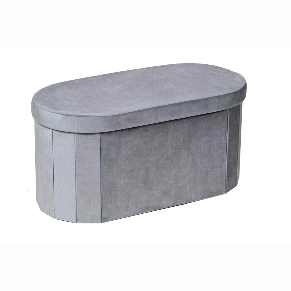 Bonlife Grey Velvet Ottoman Storage Bench with Seat,Foldable Stool Living Room Furniture,Oval Large Toy Box Storage Chest with Lid,76x38x38cm