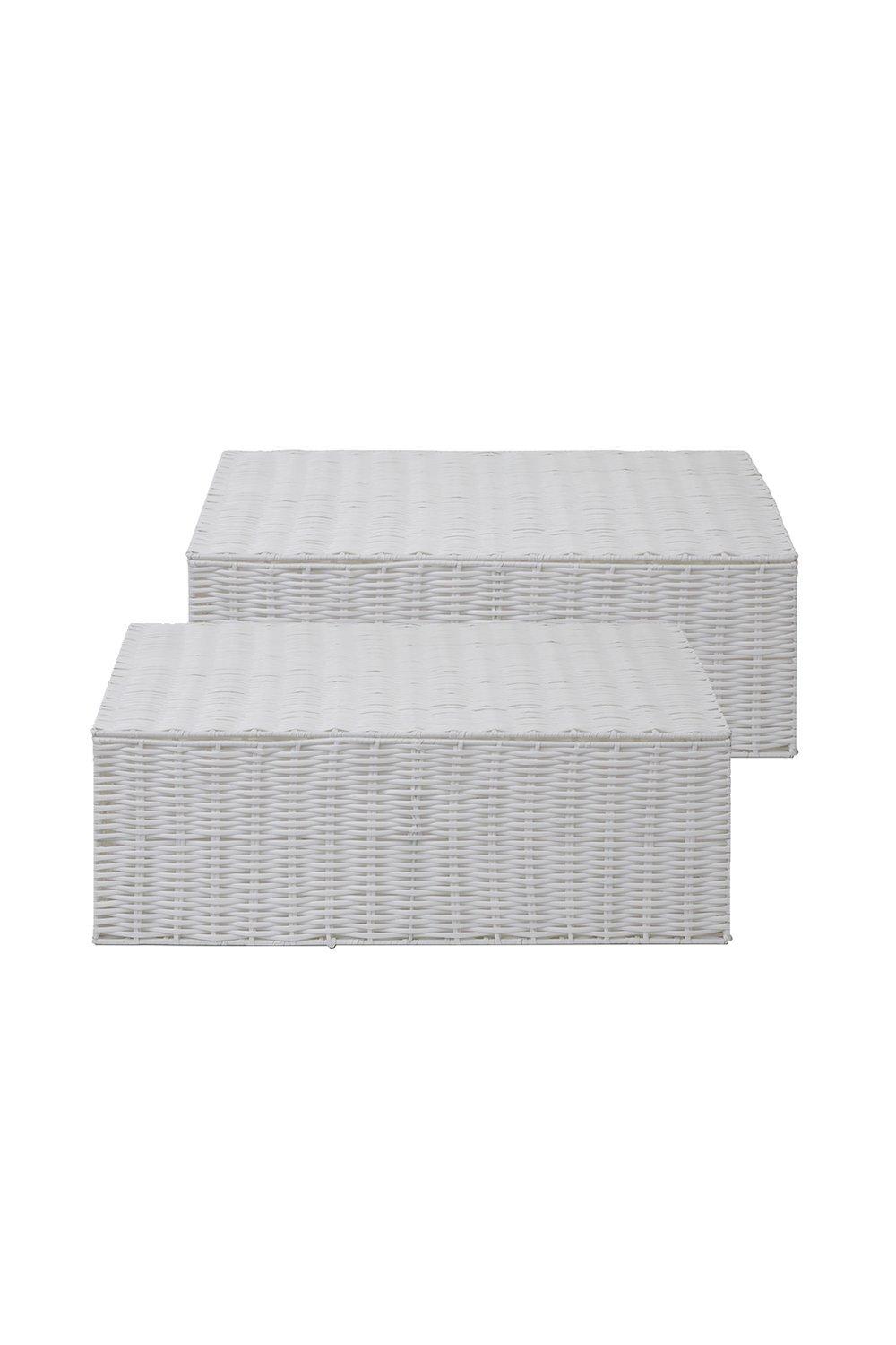 Resin Woven Under Bed Storage Box, Chest Shelf Toy Clothes Basket With Lid - White (Set of 2 - Large)