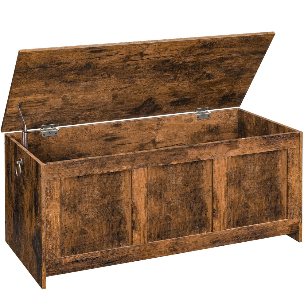 HOOBRO Storage Chest, Wooden Storage Bench, Blanket Storage Box, Wooden Storages Chest Trunk, Large Toy Chest, Shoe Storage Bench, 100 cm, U-Shaped Opening, Rustic Brown EFG141CW01G1