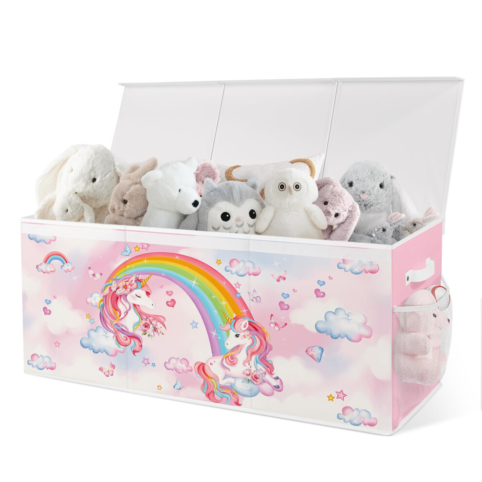 Toy Storage Folding Box Large Collapsible Jumbo Toy Chest Rainbow Unicorn Design