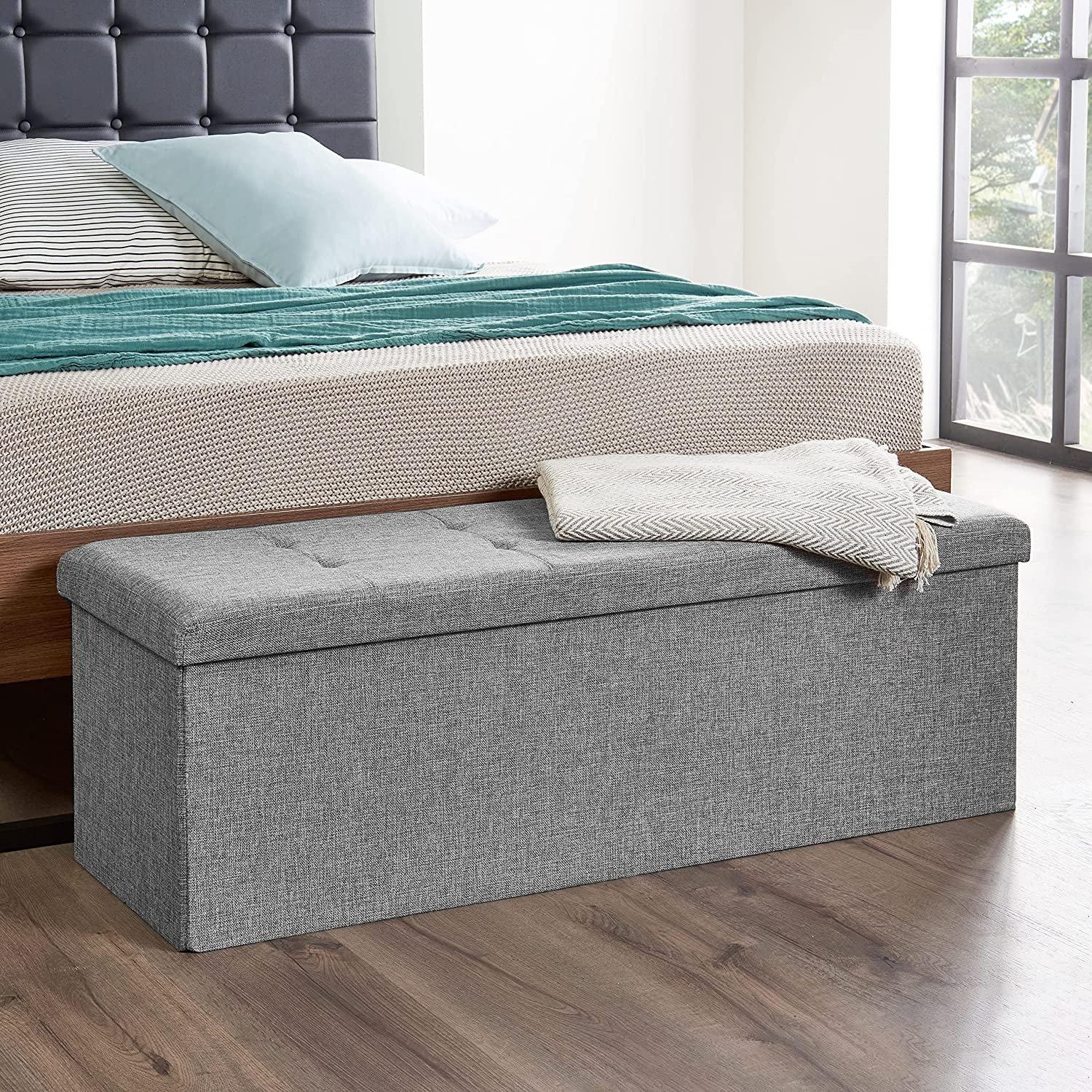 Bonlife Extra Large Folding Ottoman Storage Box,Linen Toy Storage Chest,Window Seat with Storage Trunk,End of Bed Bench,Grey 110x38x38cm