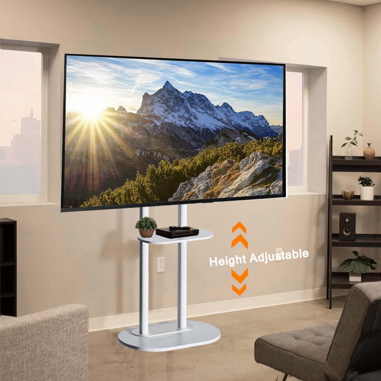 Modern TV Stand Rolling TV Floor Stand On Wheels For 32-75 Inch Large TVs,Living Room TV Stand Mount With Wooden Shelves(01)