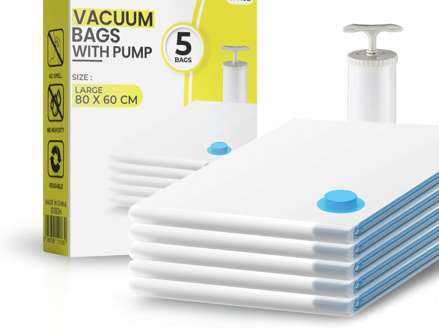 Large Vacuum Storage Bags with Pump (Pack of 5) – Heavy-Duty Space Saver for Clo