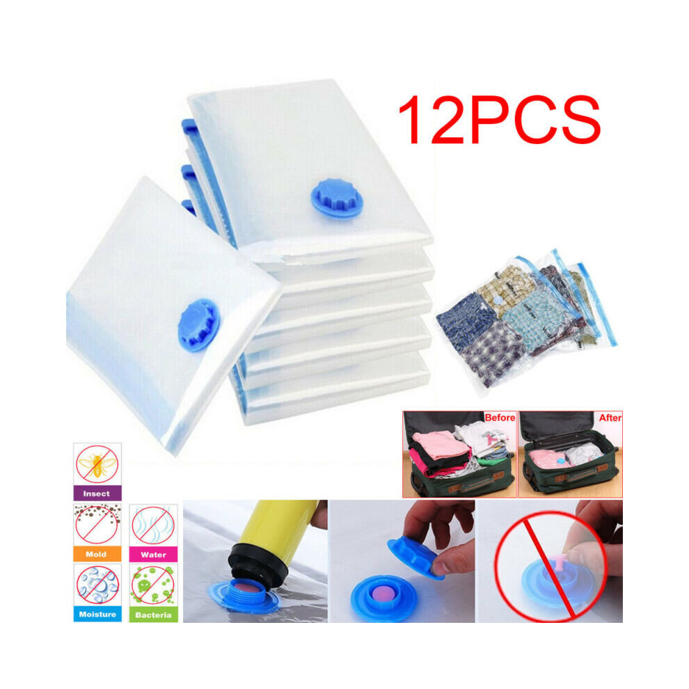 12 Large Vacuum Storage Bags Space Saving Clothes Bedding Organiser Seal Bags